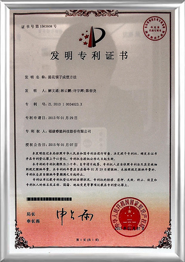 · Gewann den Excellent Patent Silver Award des China National Textile and Apparel Council