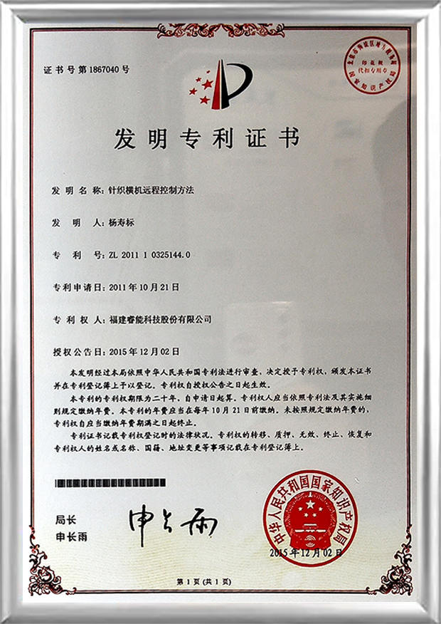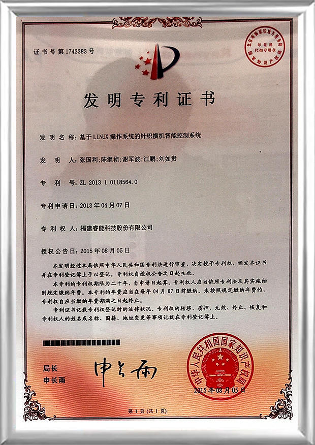 ● Anerkannt als „Forschungs- und Entwicklungszentrum für Computer-Flachstrickmaschinen der chinesischen Textilmaschinenindustrie, intelligentes Steuerungssystem“.