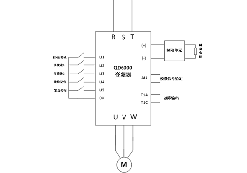 | 04 Systemeinführung: Bei diesem System wird die Spindel einer 55-kW-Vertikaldrehmaschine von einem RVE32-75-kW-Frequenzumrichter angetrieben, und ein schneller Bremsstopp wird durch eine externe Bremseinheit und einen Bremswiderstand realisiert. Das Schneiden mit konstanter Geschwindigkeit wird durch Vektorsteuerung mit offenem Regelkreis erreicht, und die durch Laständerungen verursachten Geschwindigkeitsschwankungen sind sehr gering. Der Wechselrichter wird über die Steuerklemme gestartet und die vorgegebene Drehzahl wird über das analoge Spannungssignal 0-10 V des Steuersystems gesteuert. Wenn der Motor mit 70 Hz läuft, beträgt die Drehzahlschwankung weniger als 1 U/min und die Stromschwankung weniger als 1 A, wodurch eine präzise Drehzahlregelung realisiert wird. | | ||||||||||||||||||